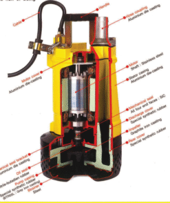- An toàn và bền bỉ: Vật liệu chế tạo vỏ bơm và cánh bơm bằng gang đúc (FC250), trục bằng thép không gỉ, và cáp bọc PVC cách nhiệt.